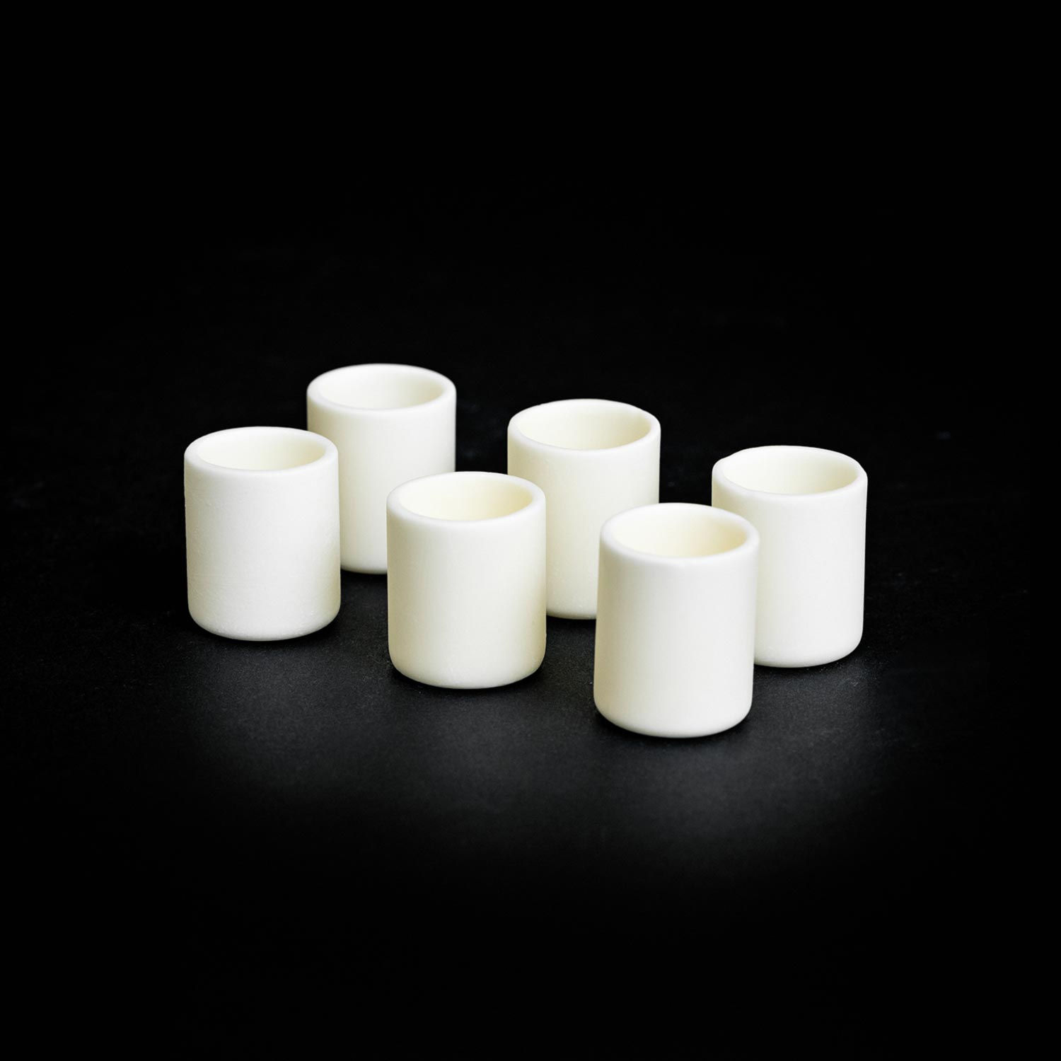CC11 Zylindrischer Tiegel. Hergestellt aus rekristallisiertem Aluminiumoxid (99,8%).