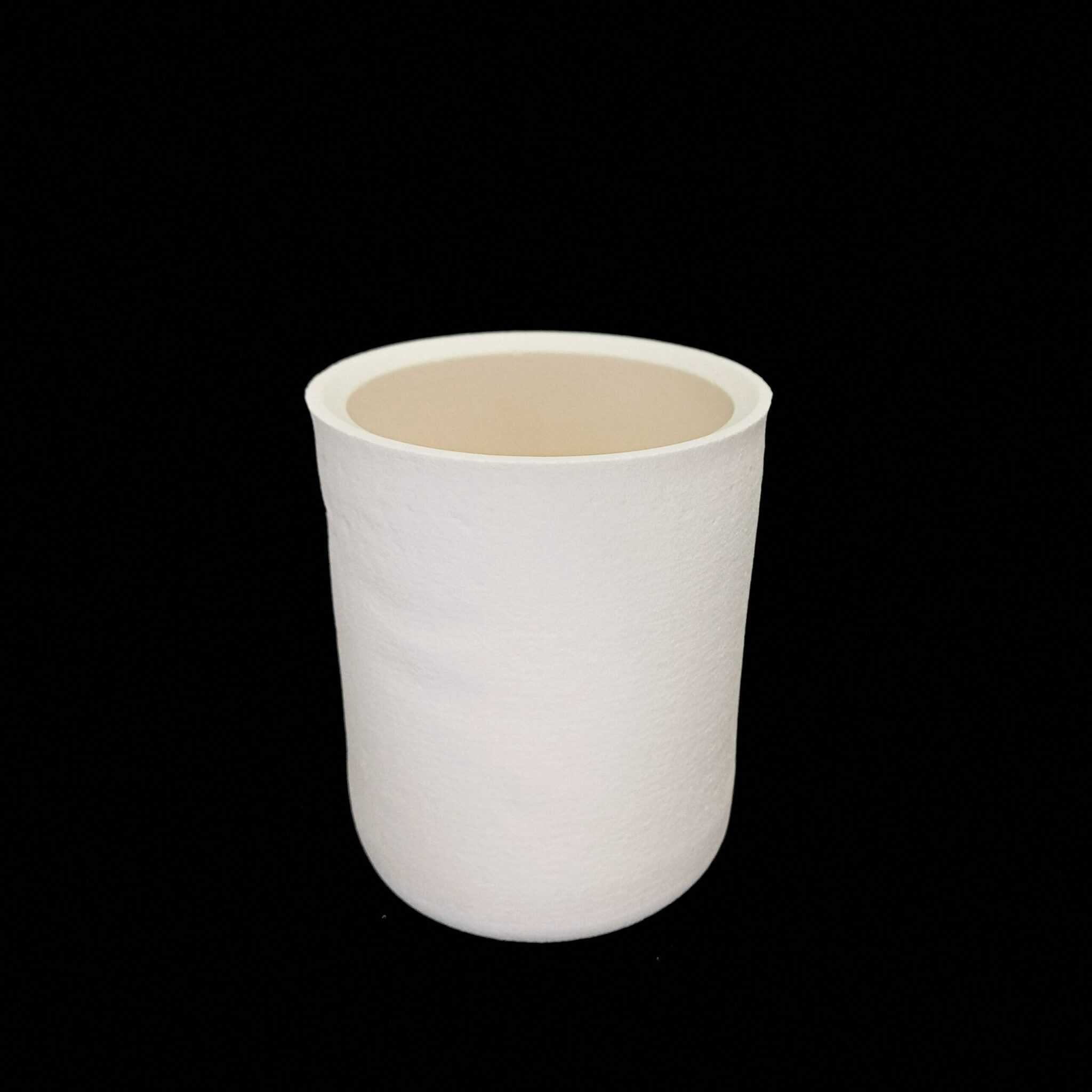 CCP96Z Cylindrical 5CaO Zirconia Crucible. This product has a flat bottom, with tall, straight, thick walls.