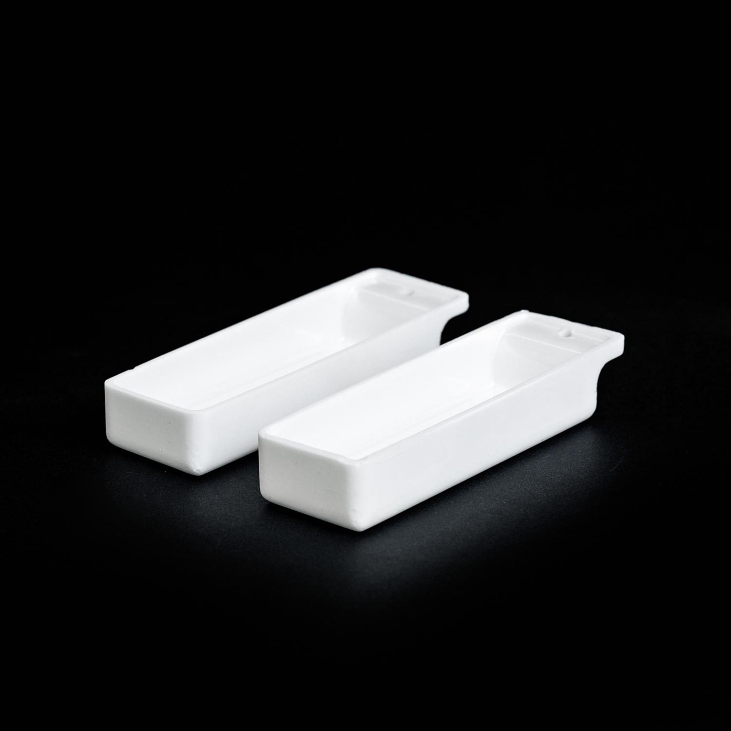 BS102Z Flat Bottom Boat Crucible. This product has a flat bottom, straight sides. Made in Yttria Stabilised Zirconia.