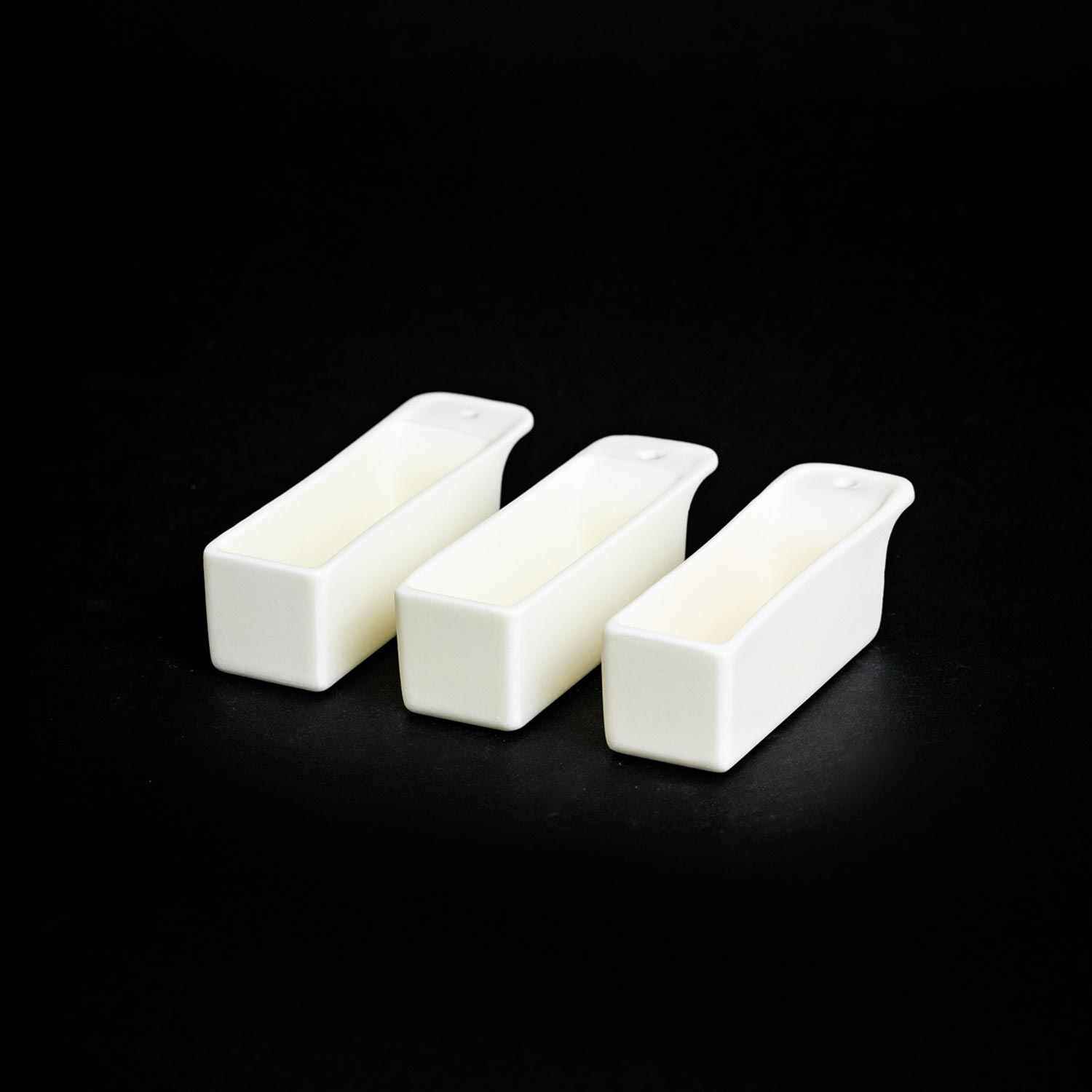 BS90 Flat Bottom Boat Crucible. This product has a flat bottom, straight sides. Made in recrystallised Alumina (99.8%).